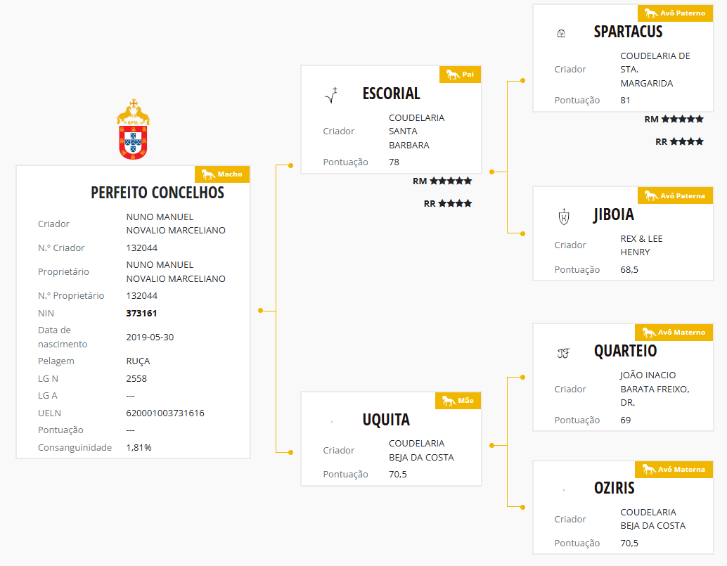 Perfeito dos Concelhos is our exceptional stallion, a true representation of the potential and nobility of the Lusitano breed. A son of the renowned Escorial, an APSL-recommended stallion, and the mare Uquita, by Quarteio, Perfeito dos Concelhos combines prestigious genetics with outstanding performance.
